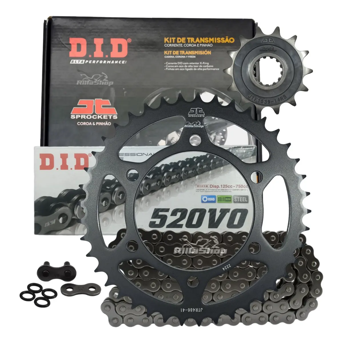 A linha D.I.D 520 V0 é perfeita para atender as especificações de força e tecnologia, possuindo emenda tipo ZJ: O elo de emenda ZJ segue o mais alto grau de segurança e desempenho. Uma vez instalado, a corrente tem características de fechamento sem emendas, que garante menor nível de ruído, menor alongamento e principalmente maior vida útil. As emendas ZJ possuem placas de fechamento com interferência, ou seja, são montadas com prensagem. Uma vez na posição correta, a placa é travada pela rebitagem da extremidade dos pinos.