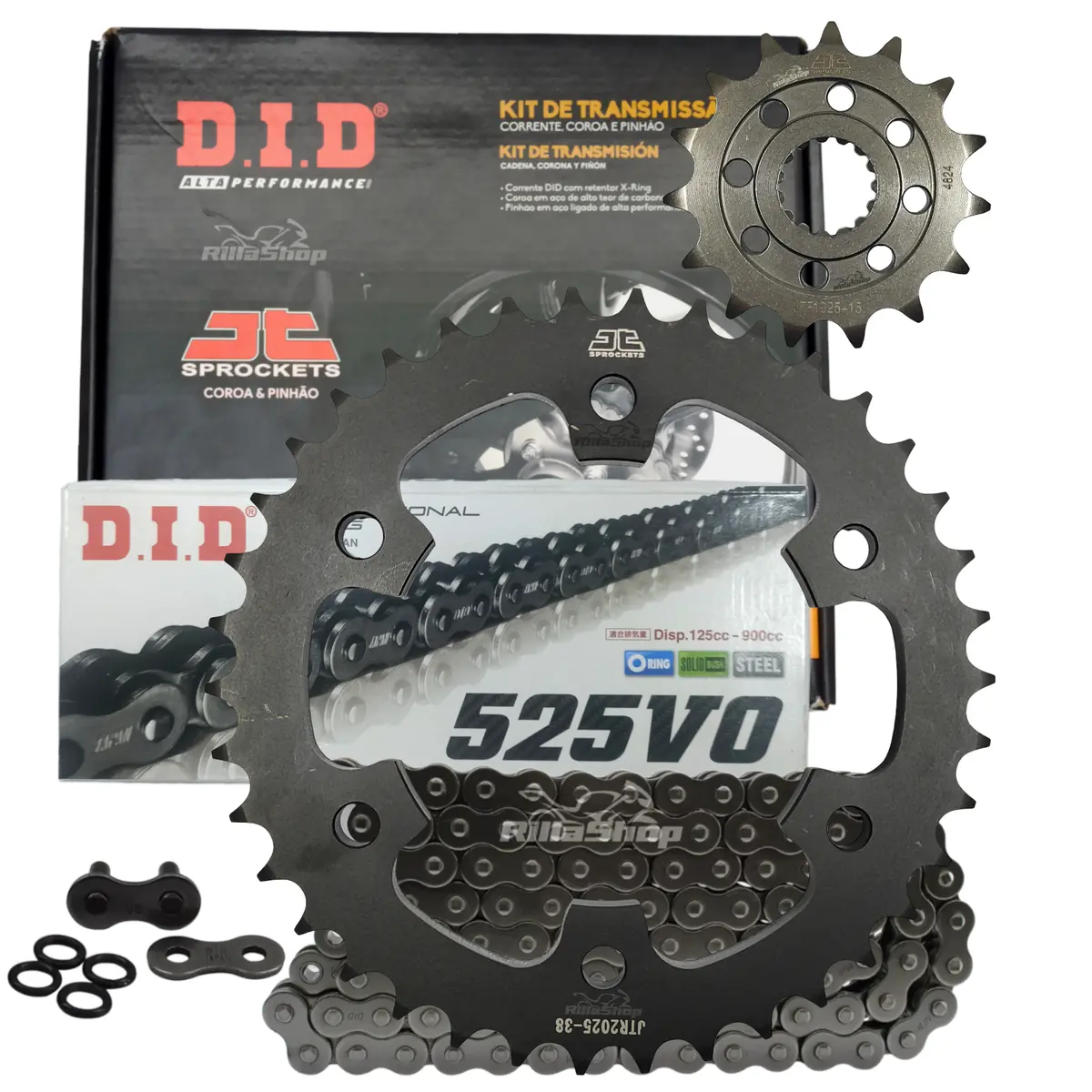A linha D.I.D 525 V0 é perfeita para atender as especificações de força e tecnologia, possuindo emenda tipo ZJ: O elo de emenda ZJ segue o mais alto grau de segurança e desempenho. Uma vez instalado, a corrente tem características de fechamento sem emendas, que garante menor nível de ruído, menor alongamento e principalmente maior vida útil. As emendas ZJ possuem placas de fechamento com interferência, ou seja, são montadas com prensagem. Uma vez na posição correta, a placa é travada pela rebitagem da extremidade dos pinos.